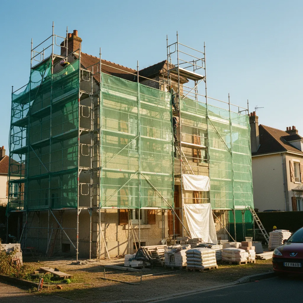 Pour une maison de plain-pied, on peut parfois travailler sur une simple plateforme élévatrice, ce qui réduit les coûts. Mais dès qu’on dépasse un étage, l’échafaudage tubulaire est indispensable. Comptez 15 à 25 €/m² de façade pour la location, le montage et le démontage. Sur une maison avec 120 m² de façade, ça représente 1 800 à 3 000 € rien que pour l’échafaudage.